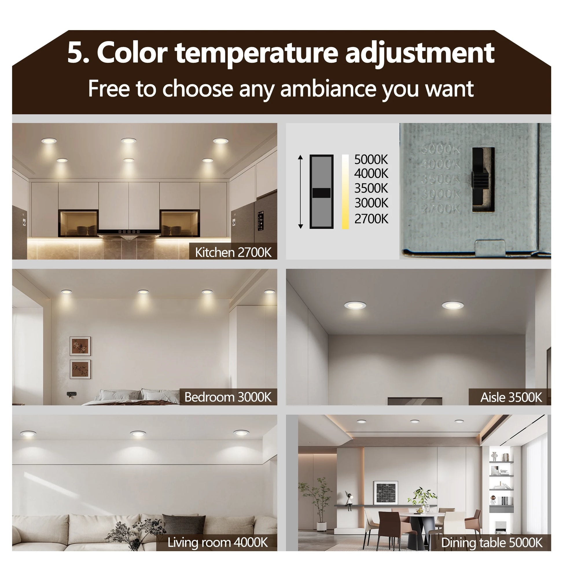12-Pack 4 Inch Ultra-Thin LED Recessed Ceiling Light with Junction Box, 2700K-5000K Dimmable Color Changing Downlight