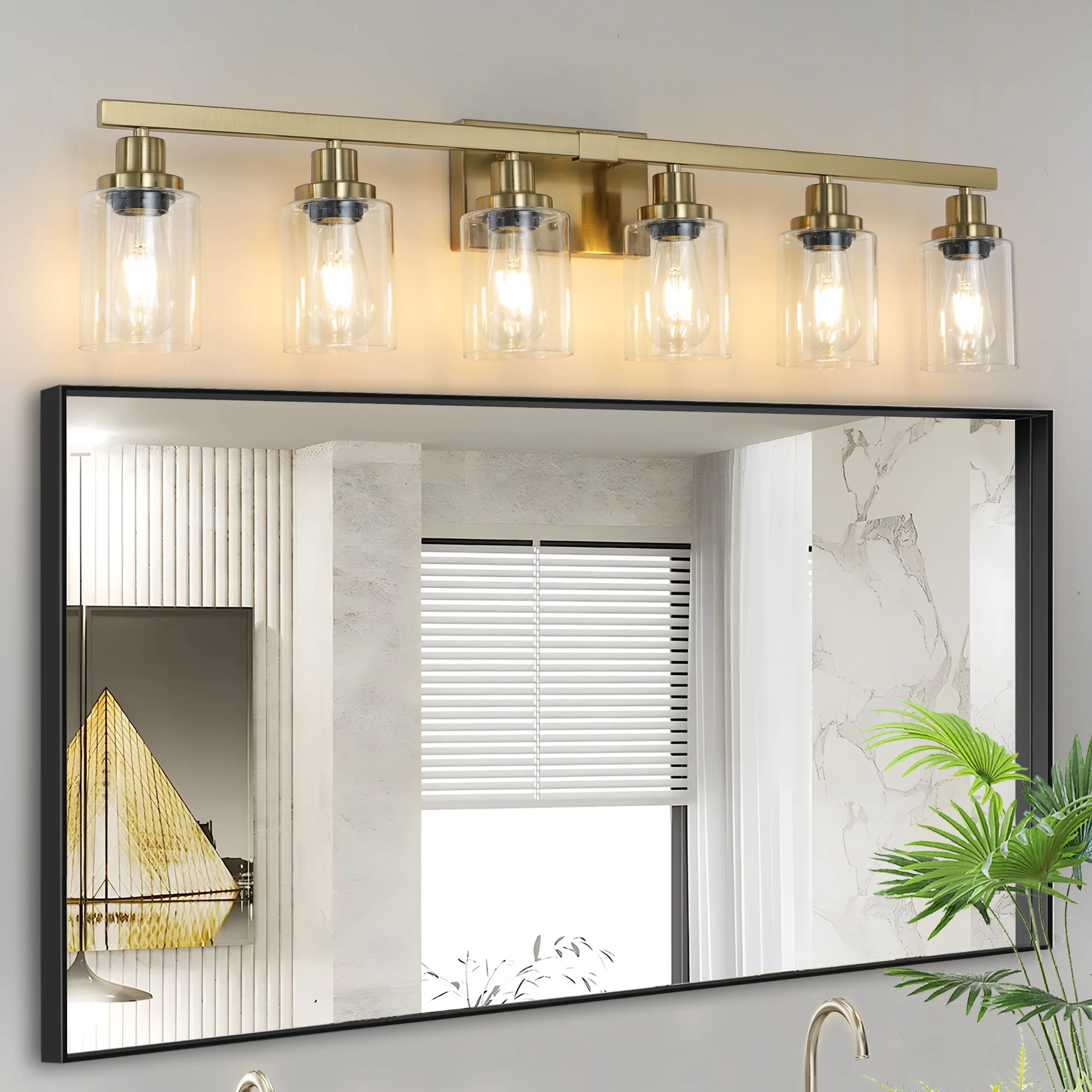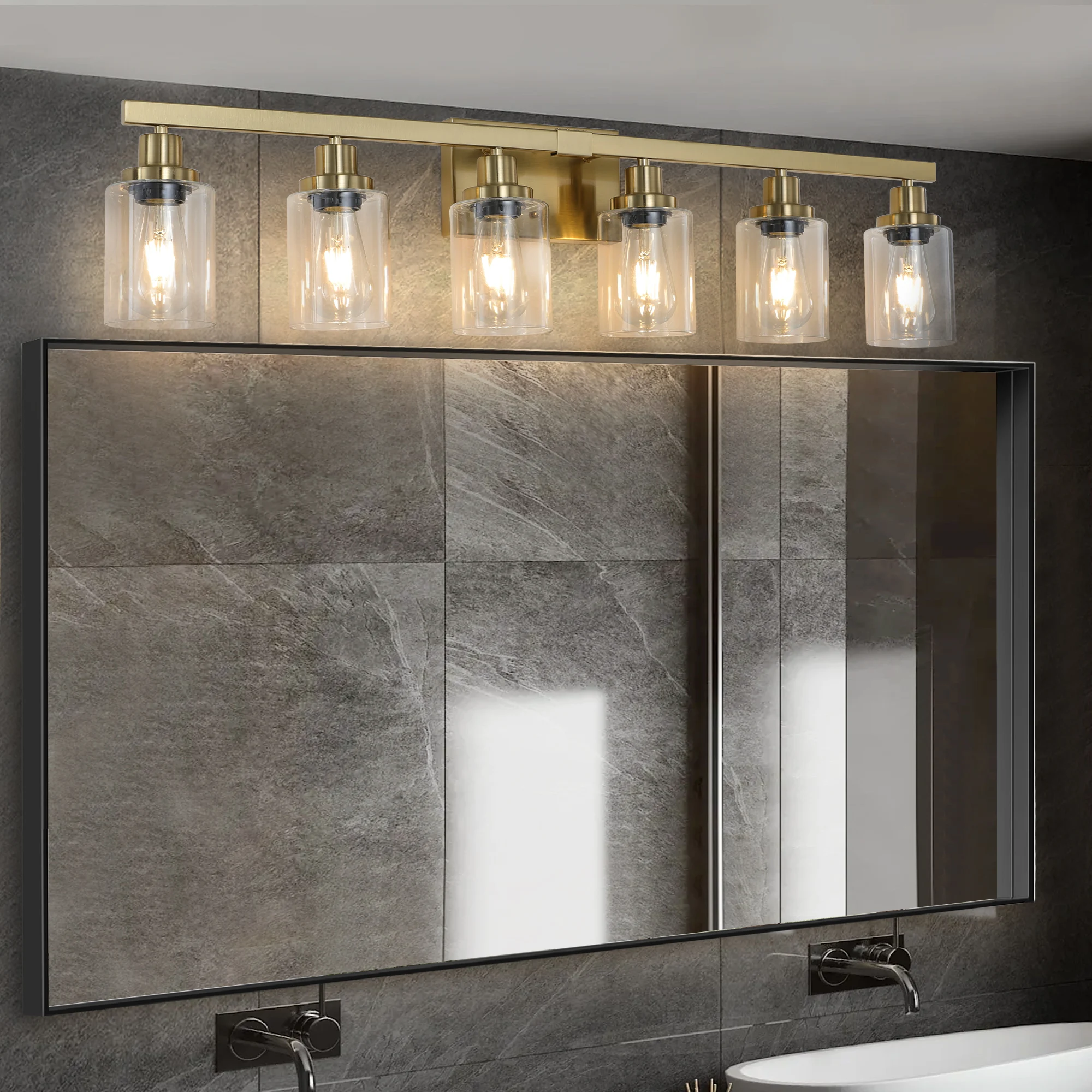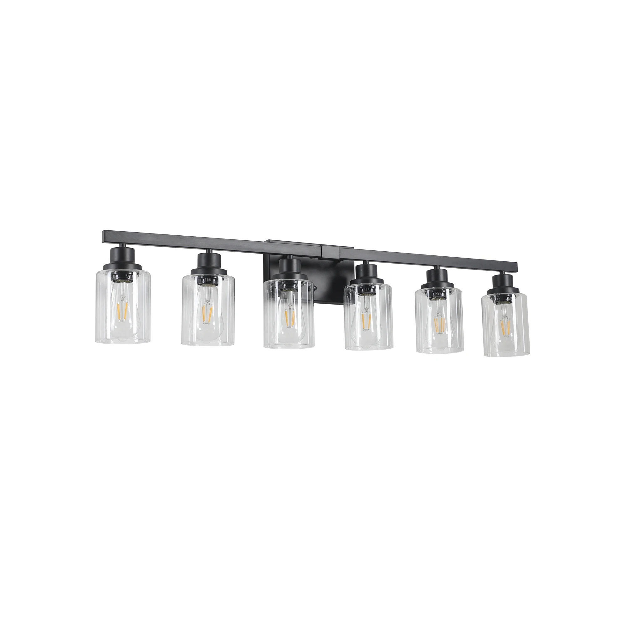 6-Light Bathroom Vanity Light Industrial Metal Fixture with Clear Glass Shades Wall Mount Mirror Lighting for Bathroom (No Bulb)