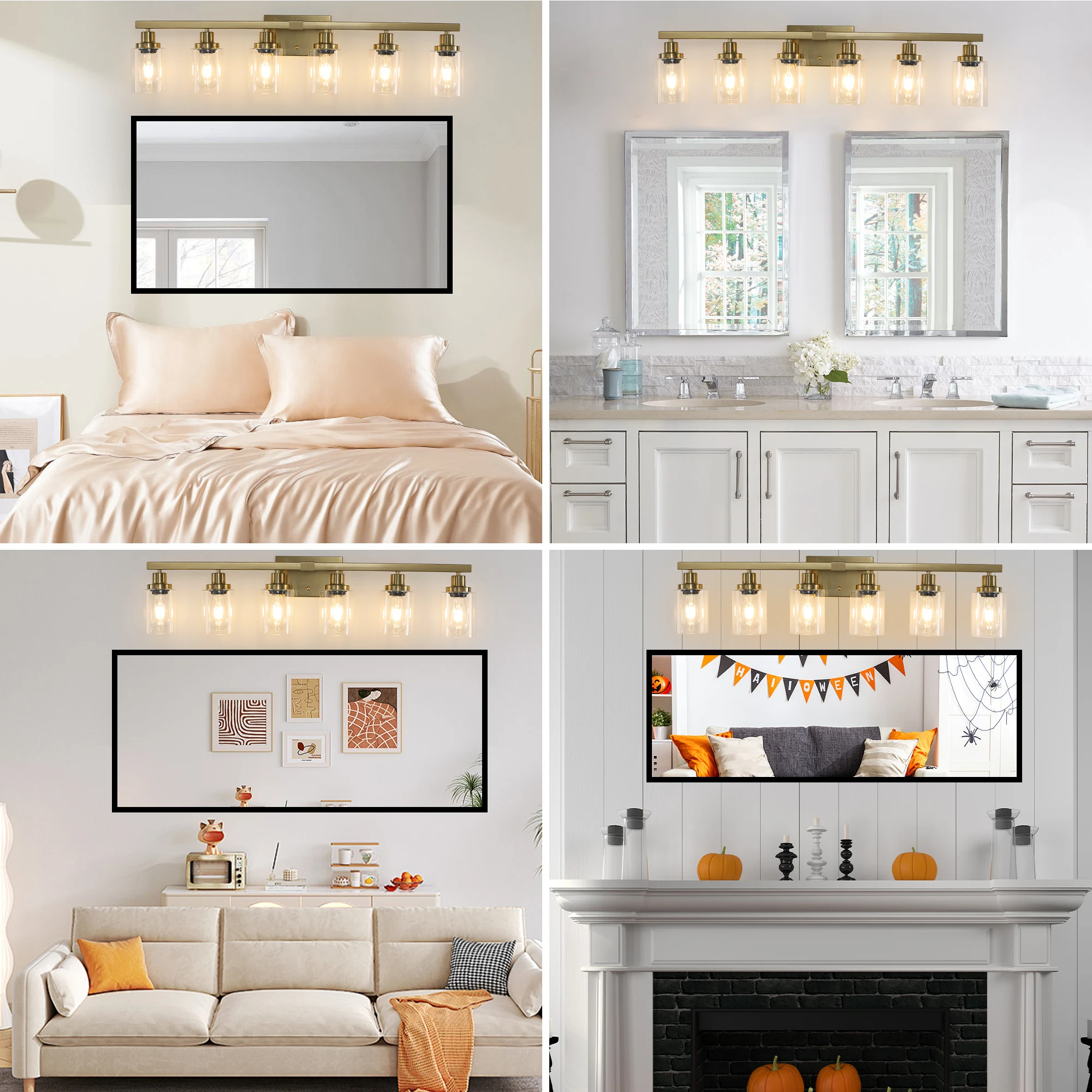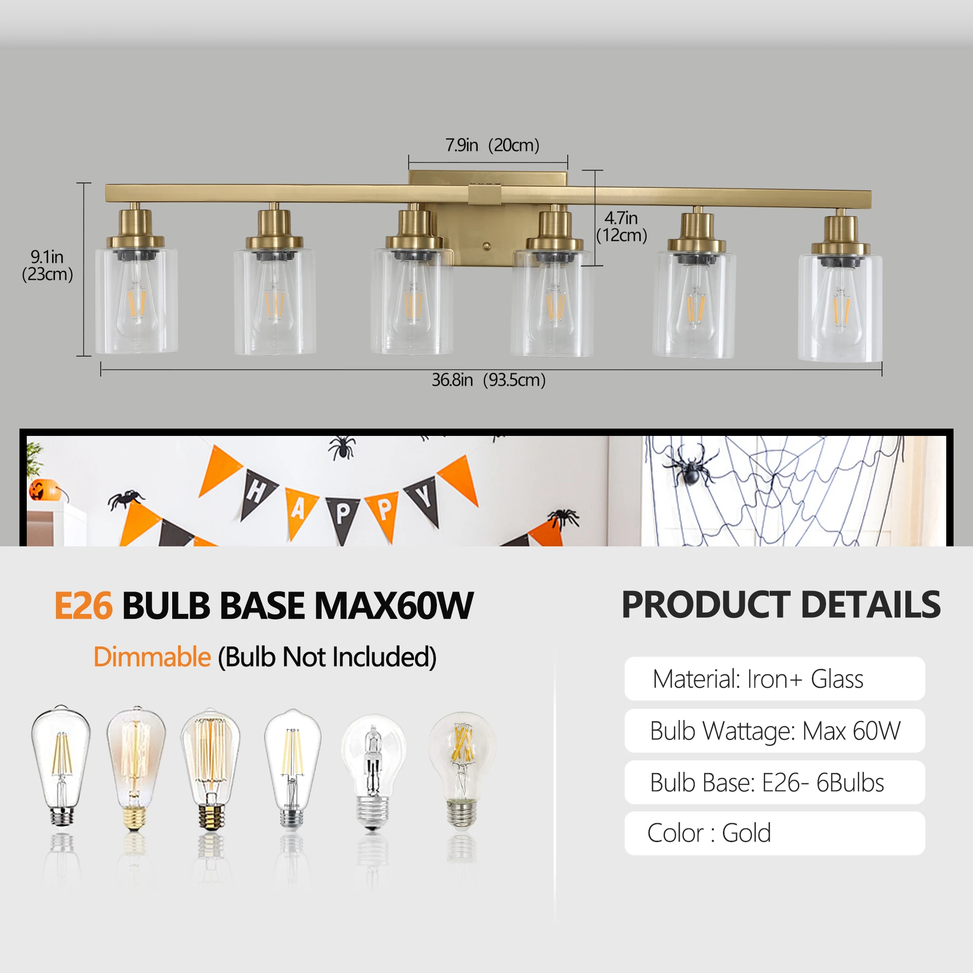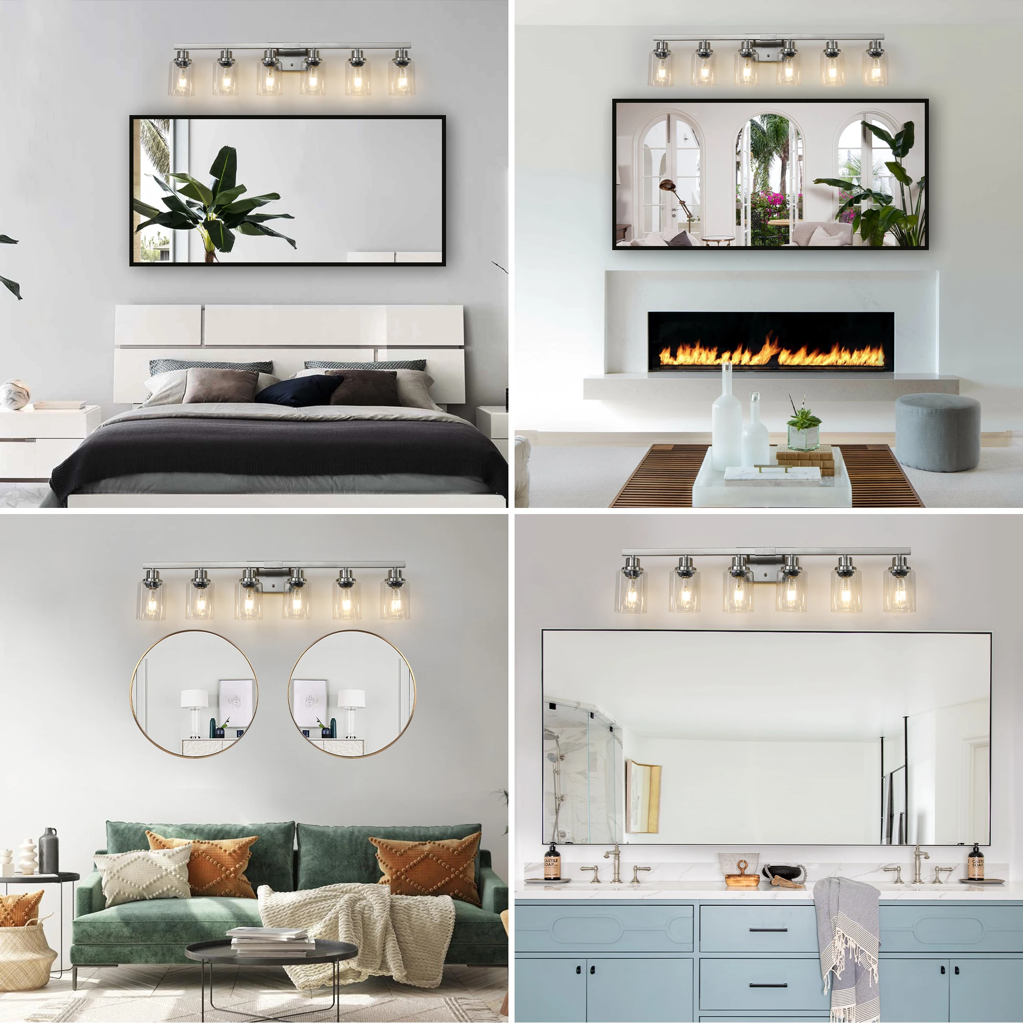 6-Light Bathroom Vanity Light Industrial Metal Fixture with Clear Glass Shades Wall Mount Mirror Lighting for Bathroom (No Bulb)