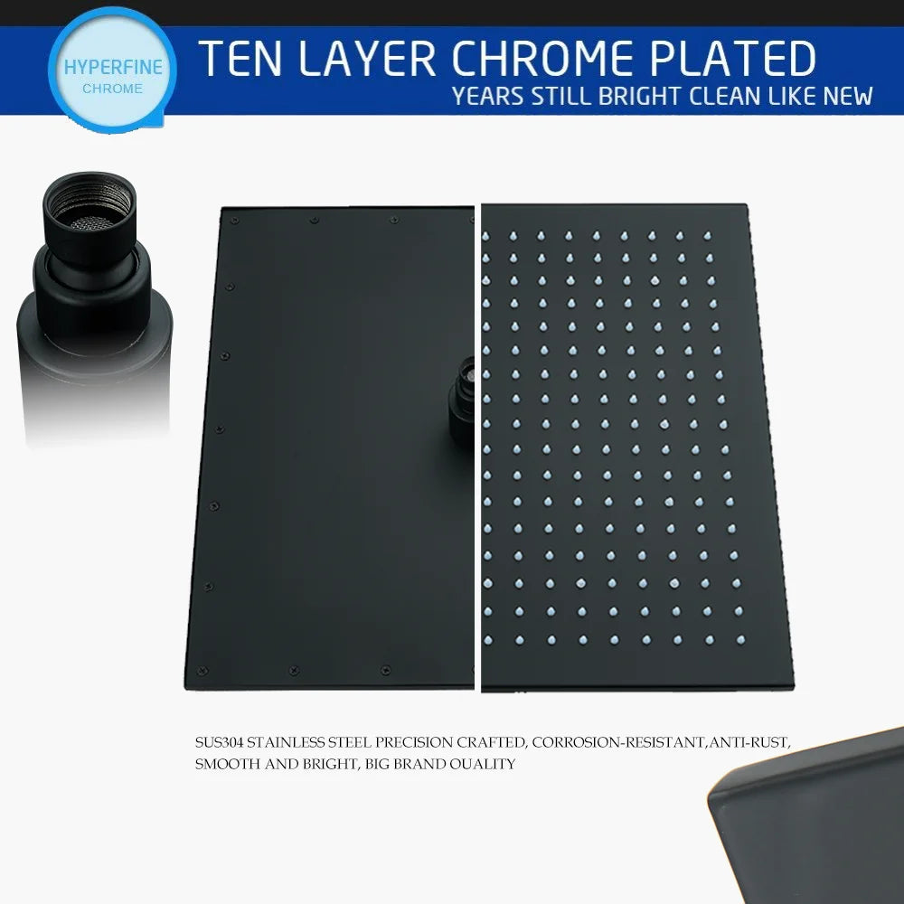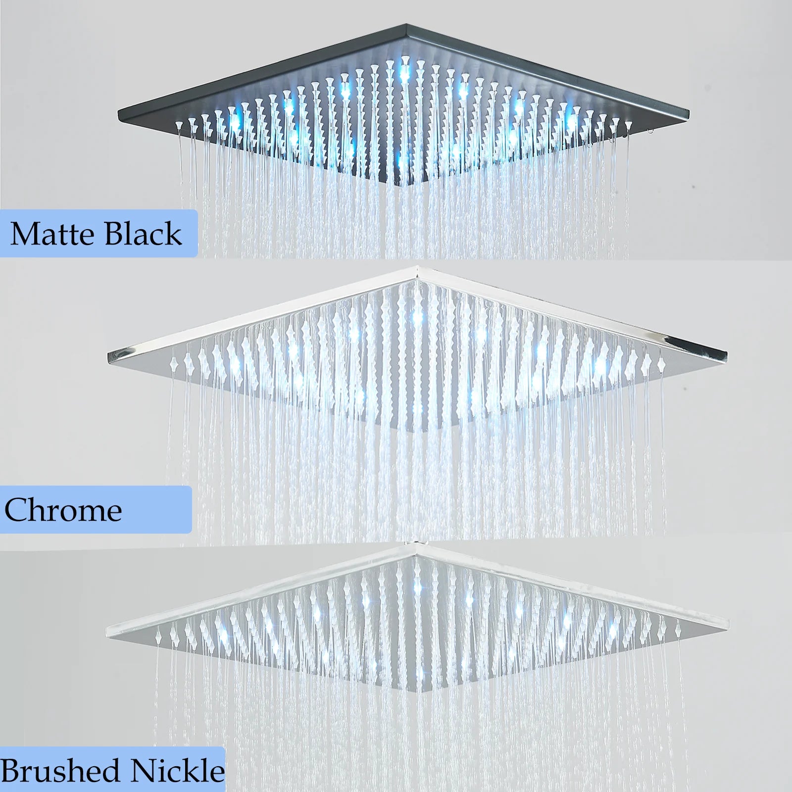Chrome Bathroom 16inch Large Rainfall Shower Faucet LED Spray Wall Mounted Hot Cold Tap 3 Color Changing Head Home Replace