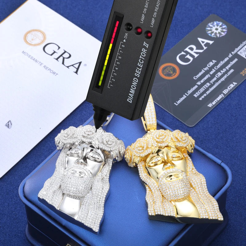 Iced Out VVS Moissanite Jesus Head Pendant Necklace in 925 Sterling Silver for Men and Women