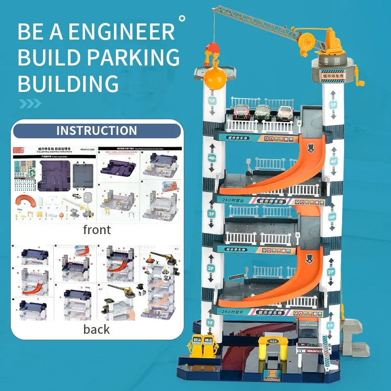 Each set includes a comprehensive parking lot toy that will inspire imaginative play scenarios. Whether it's racing down the slides or parking their favorite cars, children will love creating their own adventures. The Kids Five-Story Rail Track Parking Building Toy not only entertains but also encourages social interaction as kids play together.