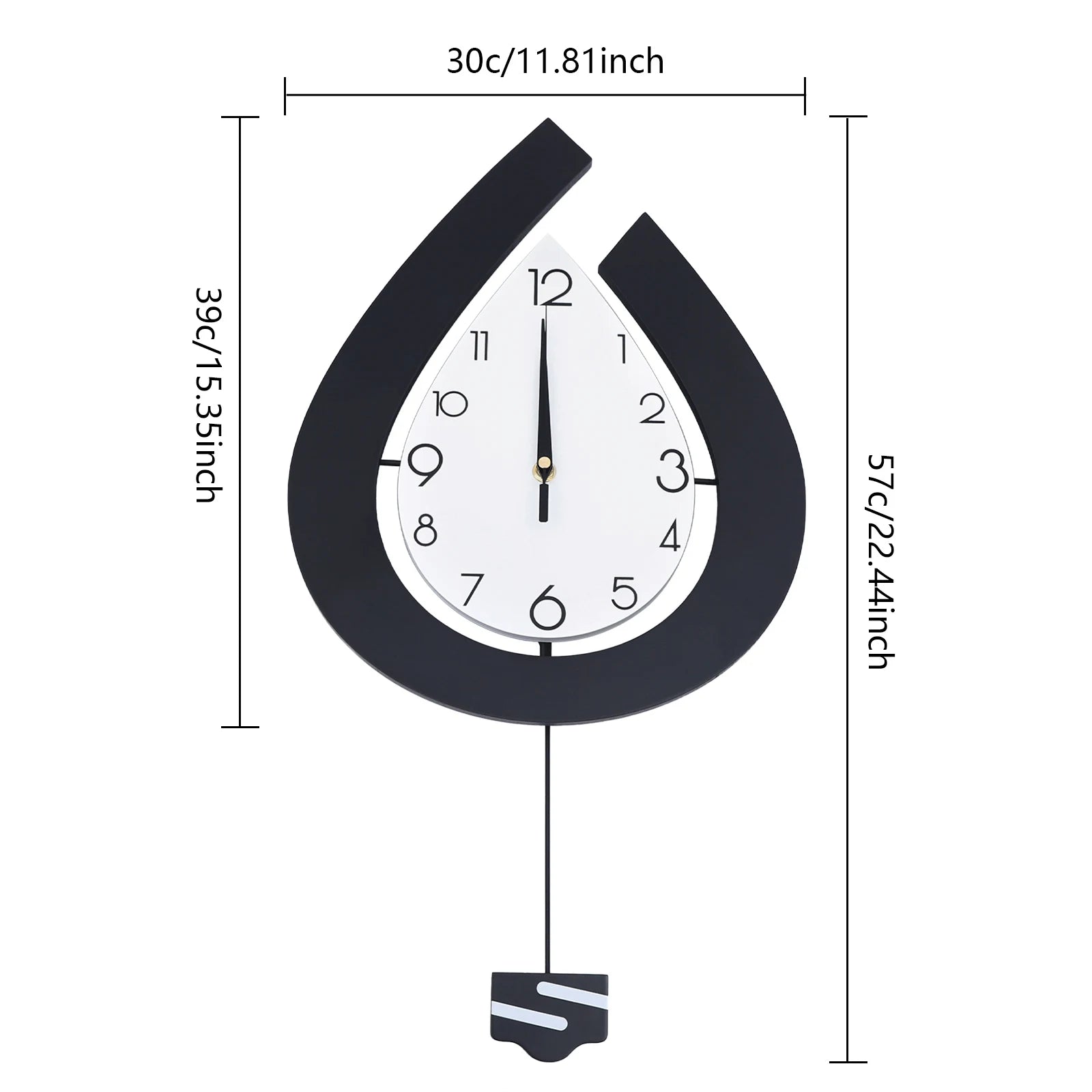 LOYALHEARTDY Large Swing Wall Clock Living Room Modern Decor Silent Pendulum Clocks Wall-Mount Teardrop Shape Clock Decoration