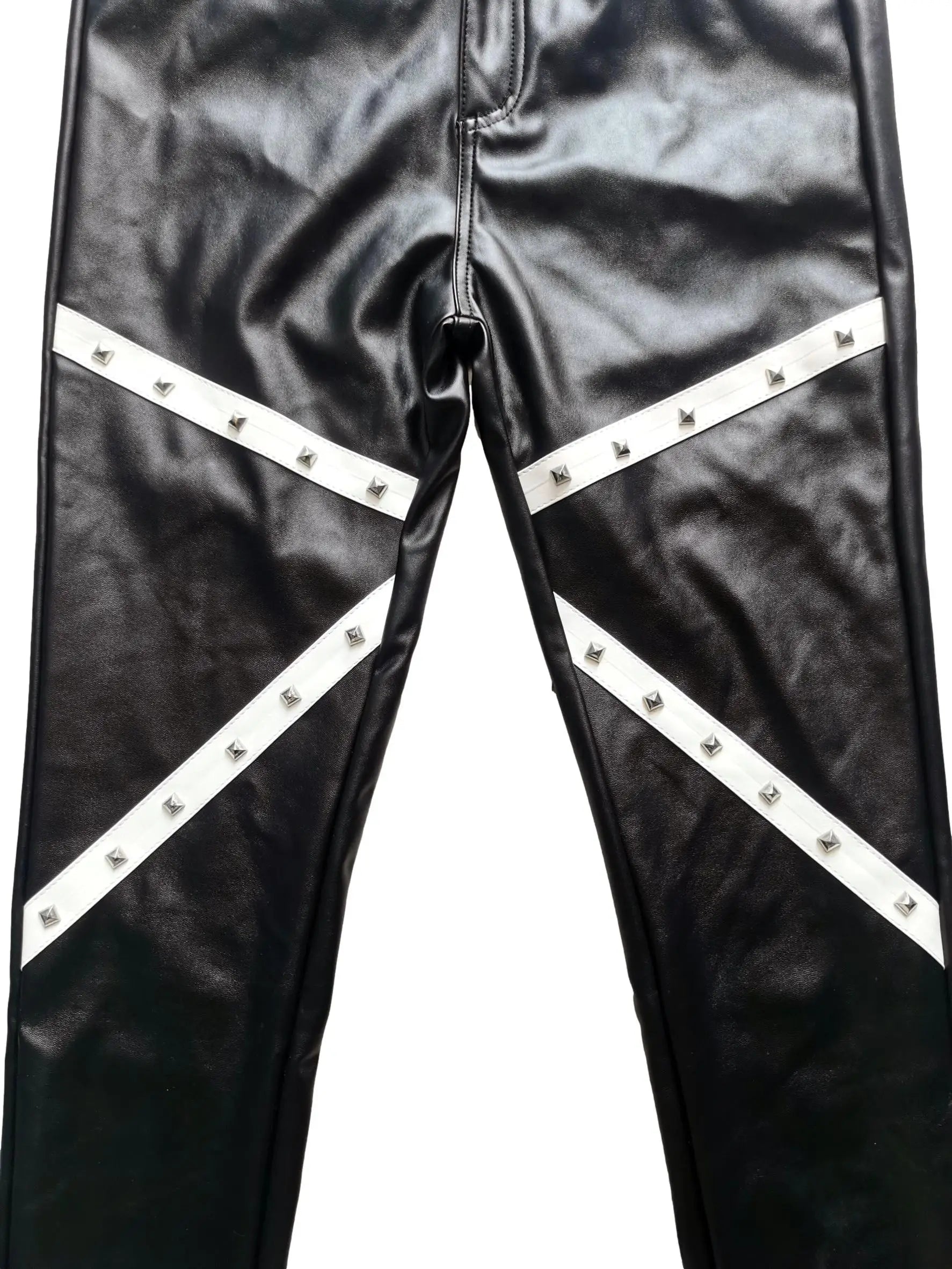 Men's Gothic Rock Punk Biker Slim Faux Leather Studded Stretch Pants for Dance Parties
