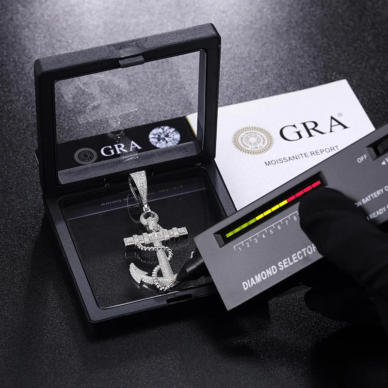 Moissanite Anchor Necklace in 925 Sterling Silver Iced Out Hip Hop Jewelry for Unisex