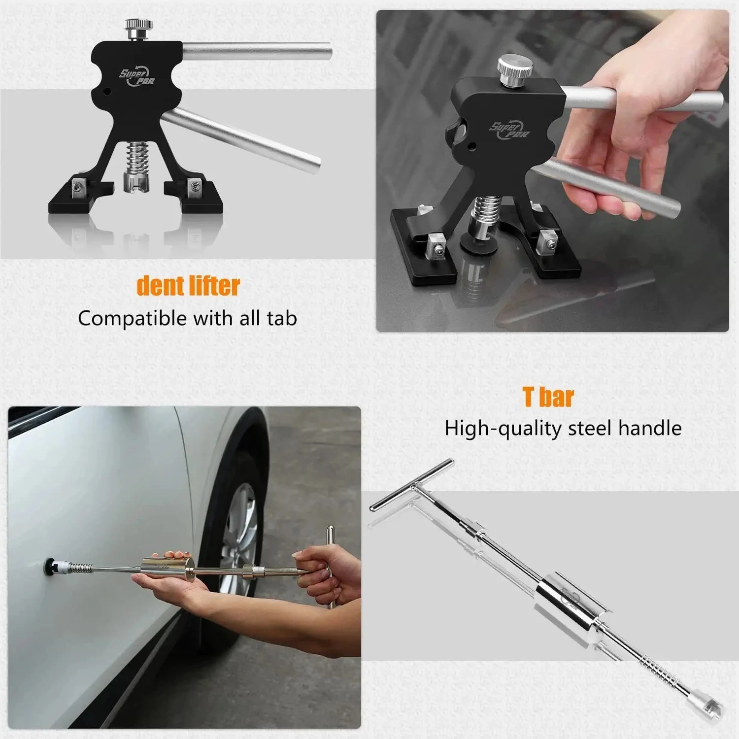 Transform your car care routine with the Professional PDR Car Paintless Dent Repair Kit by SUPER PDR. This comprehensive car dent repair tools set is designed for both DIY enthusiasts and professional auto body technicians, enabling you to easily remove dents without damaging your vehicle's paint. Experience the convenience of paintless dent repair with our expertly crafted tools, including a powerful auto dent puller that guarantees exceptional results.