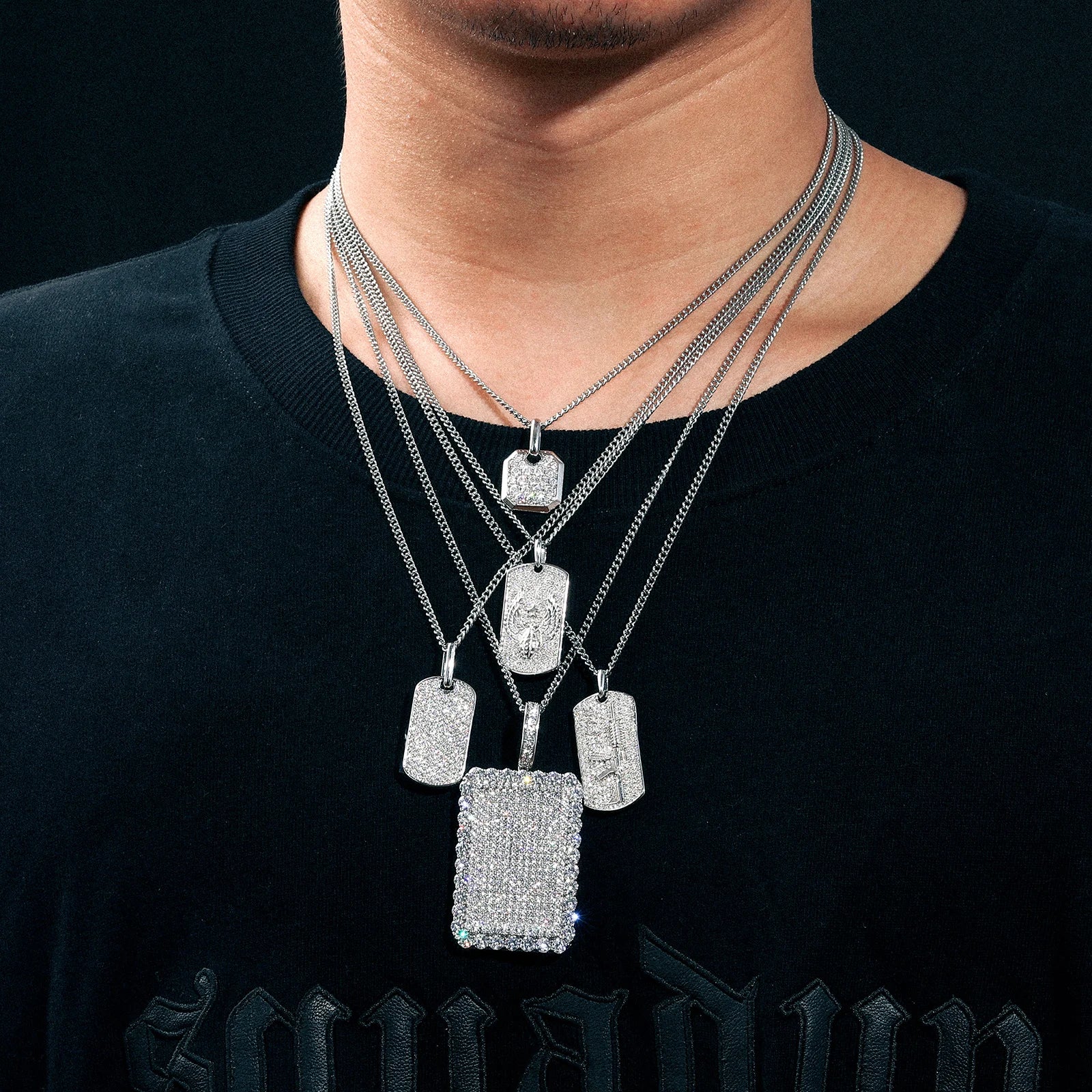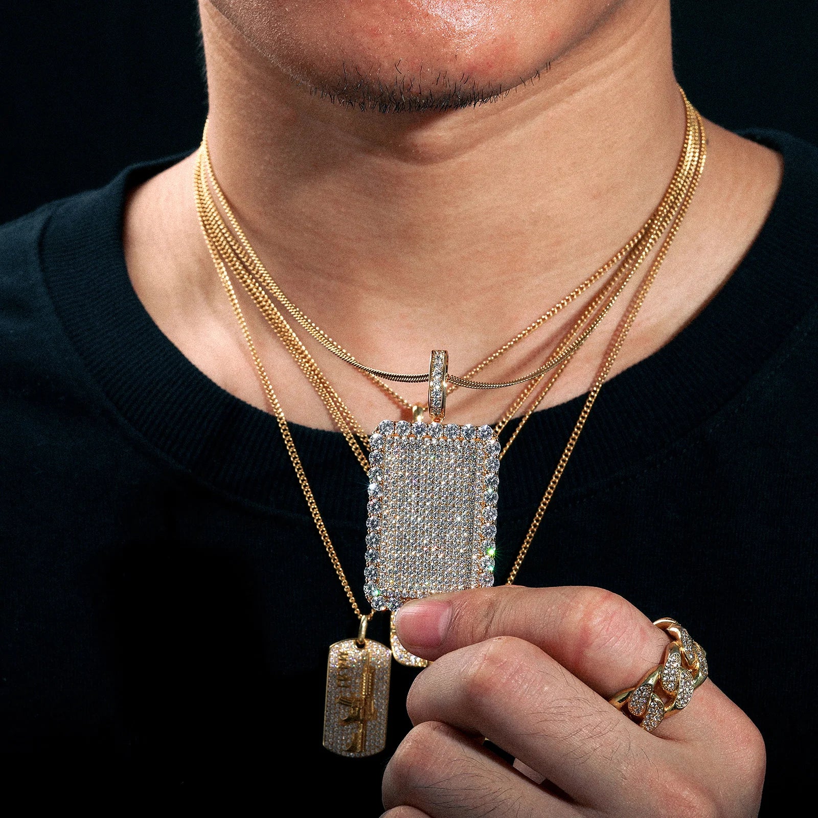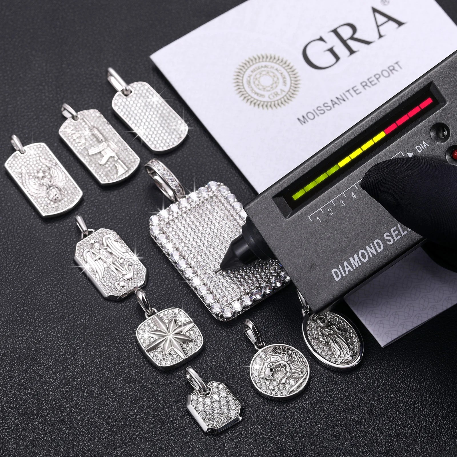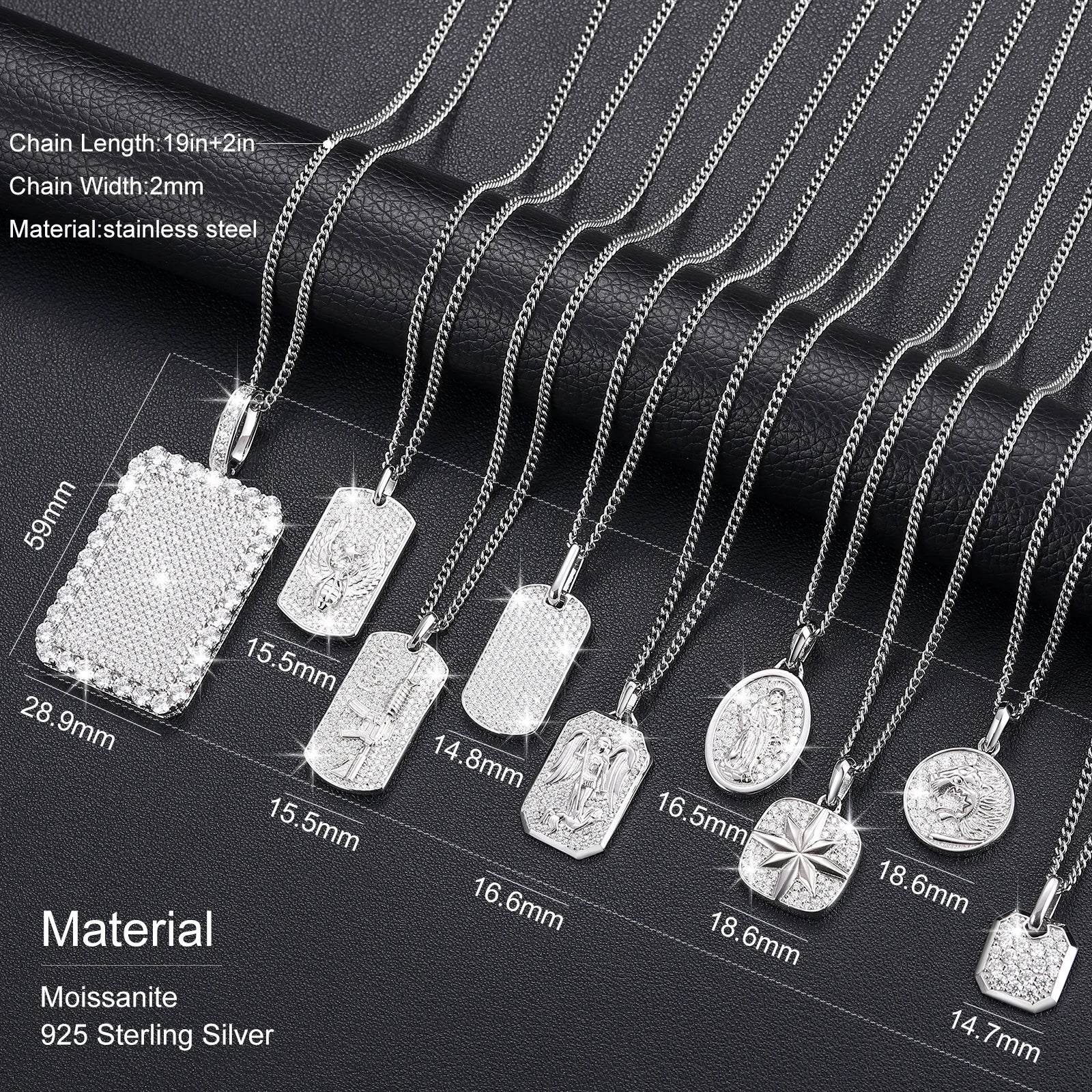 S925 Moissanite Streamline Tag Pendant Necklace for Unisex with Free 2MM Steel Chain