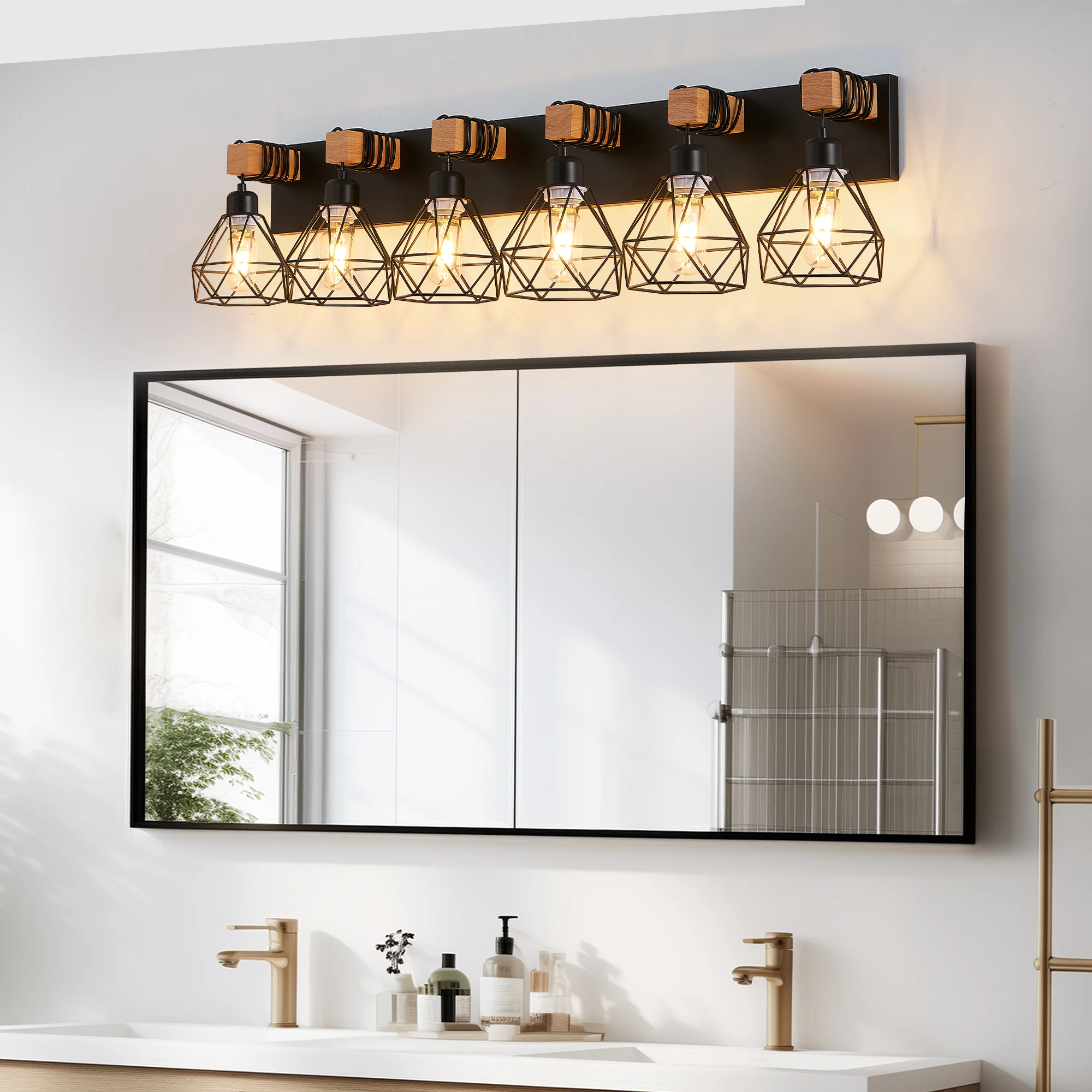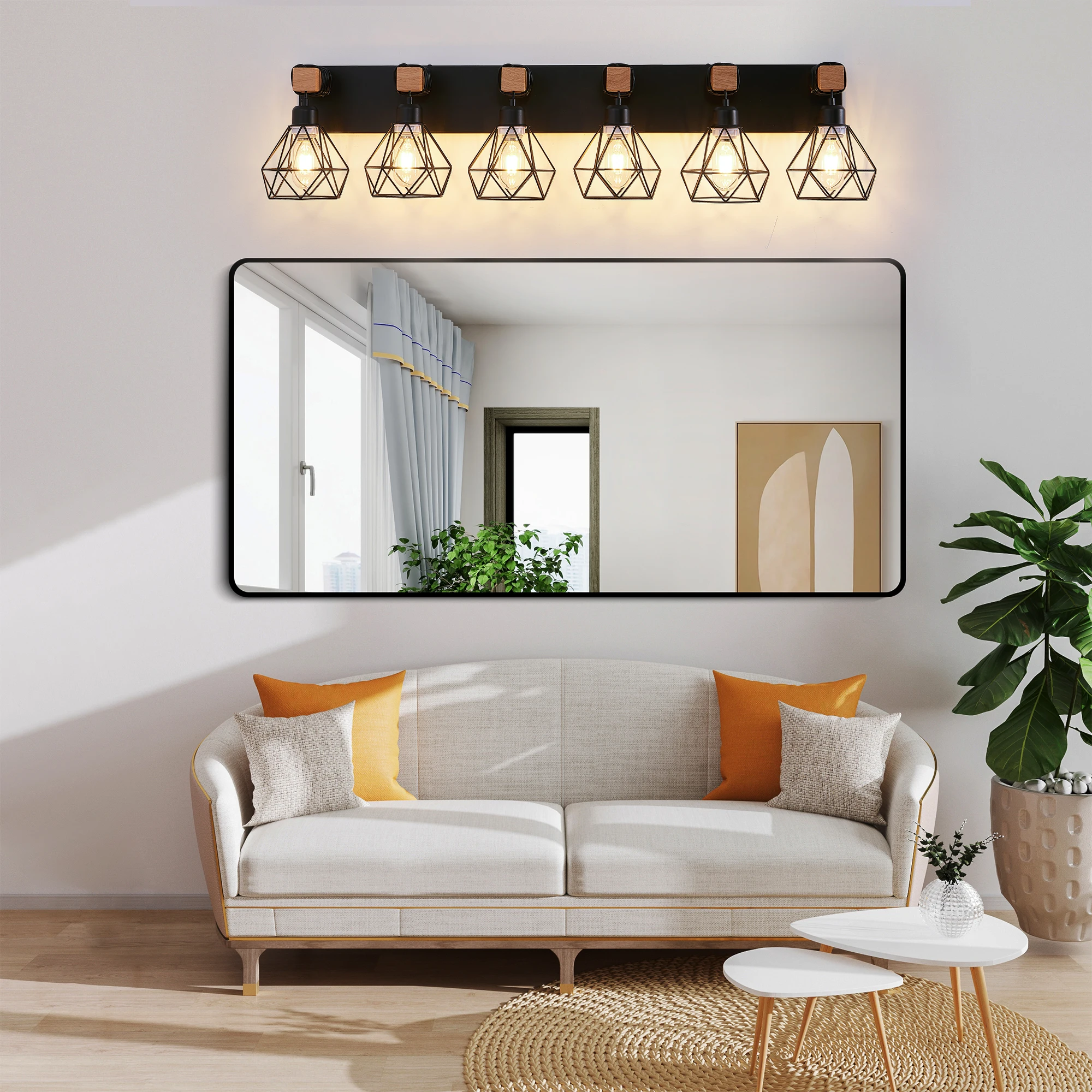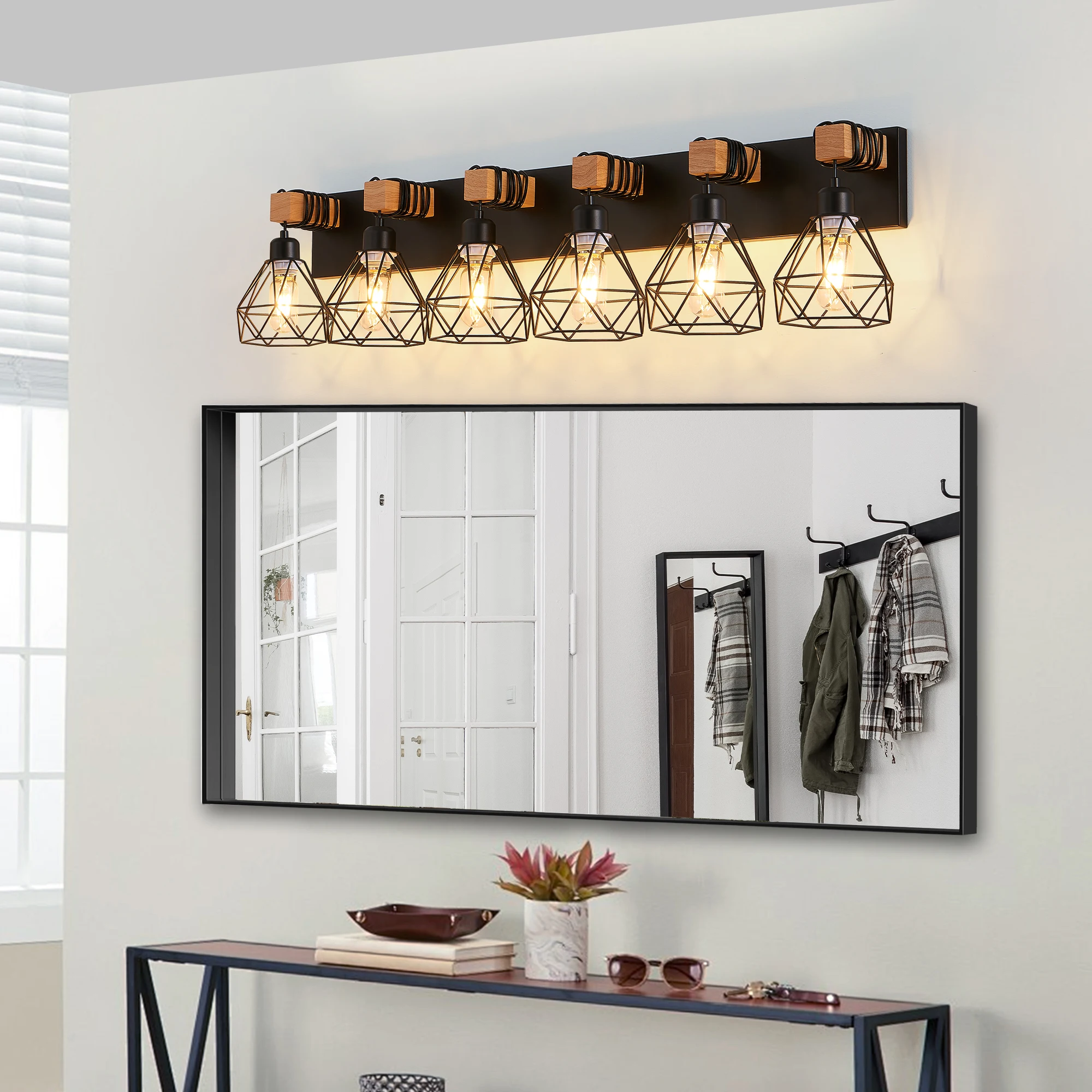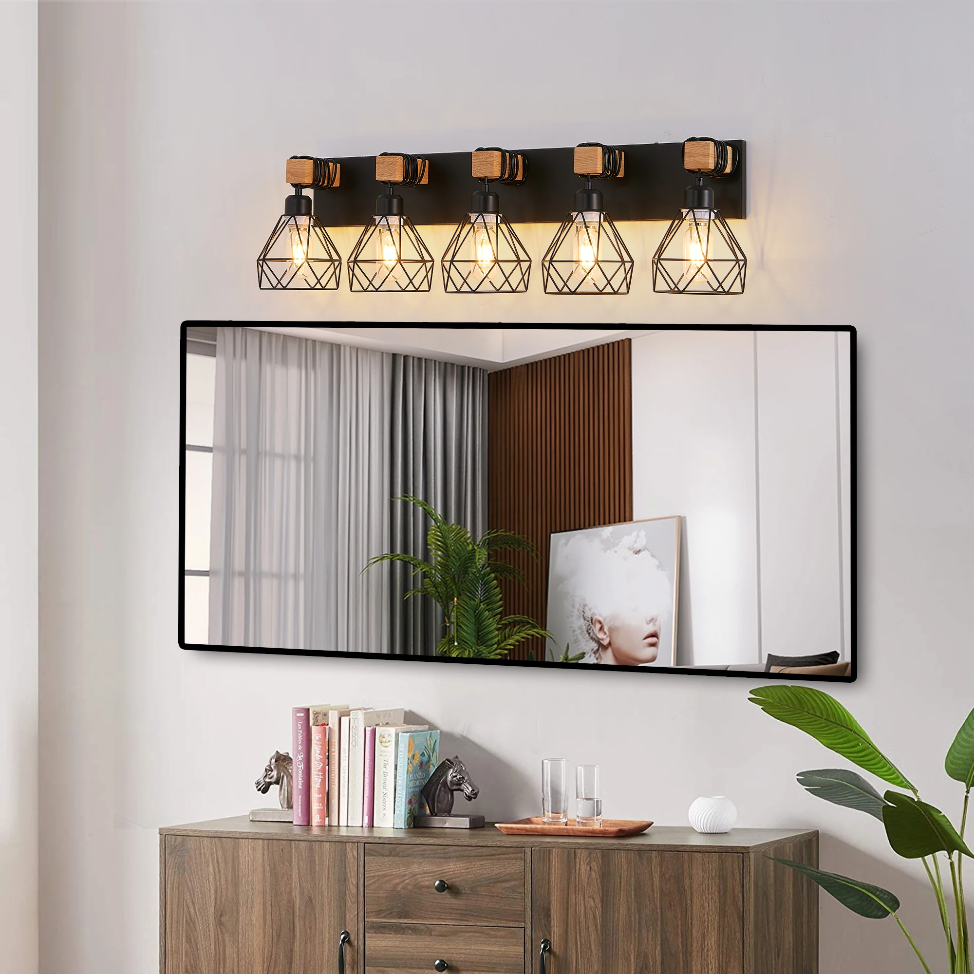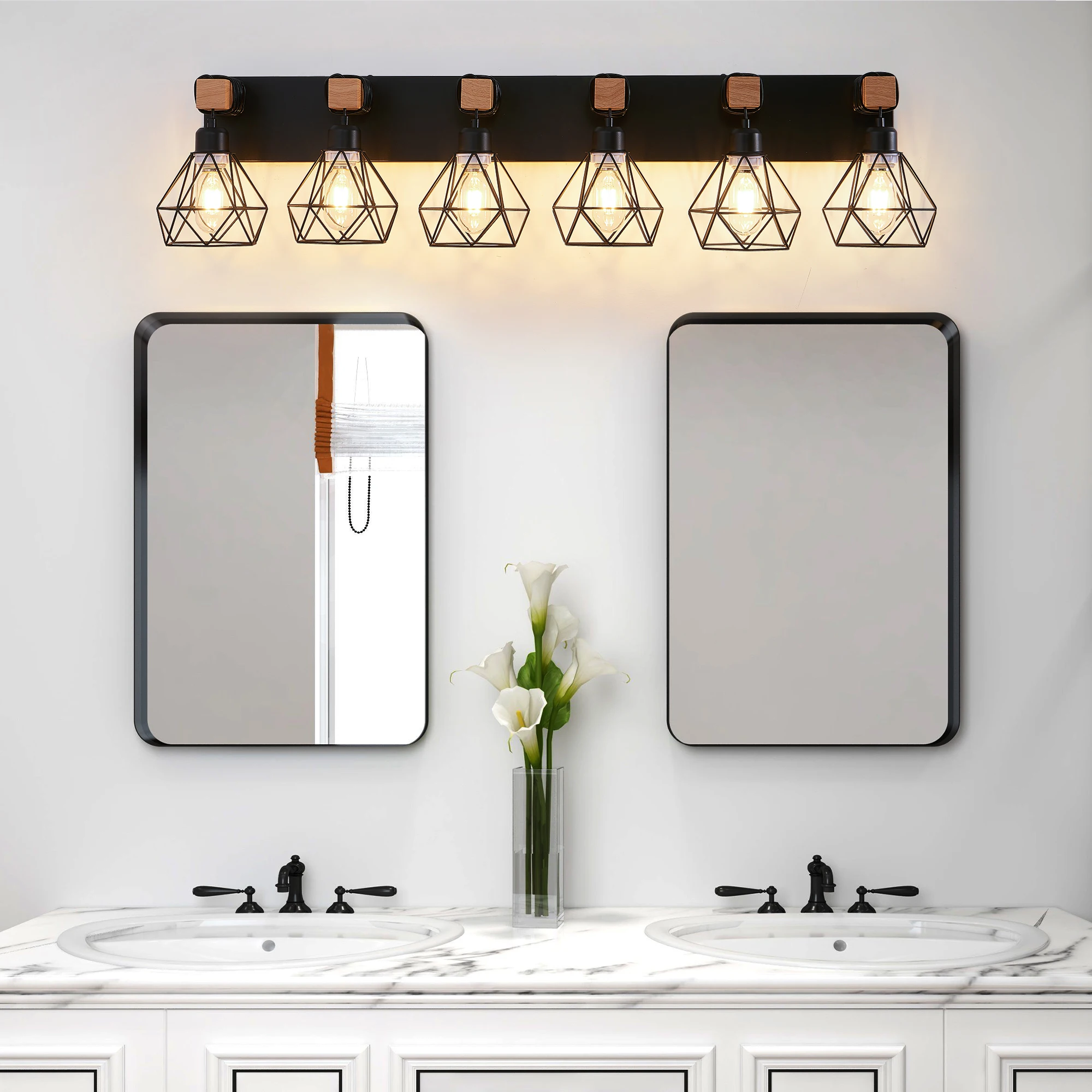 Vanity Wall Light | Cage Farmhouse Geometric Style | Black Iron Metal | E26 Bulb Socket | Ideal for Bathroom, Hallway, Bedroom